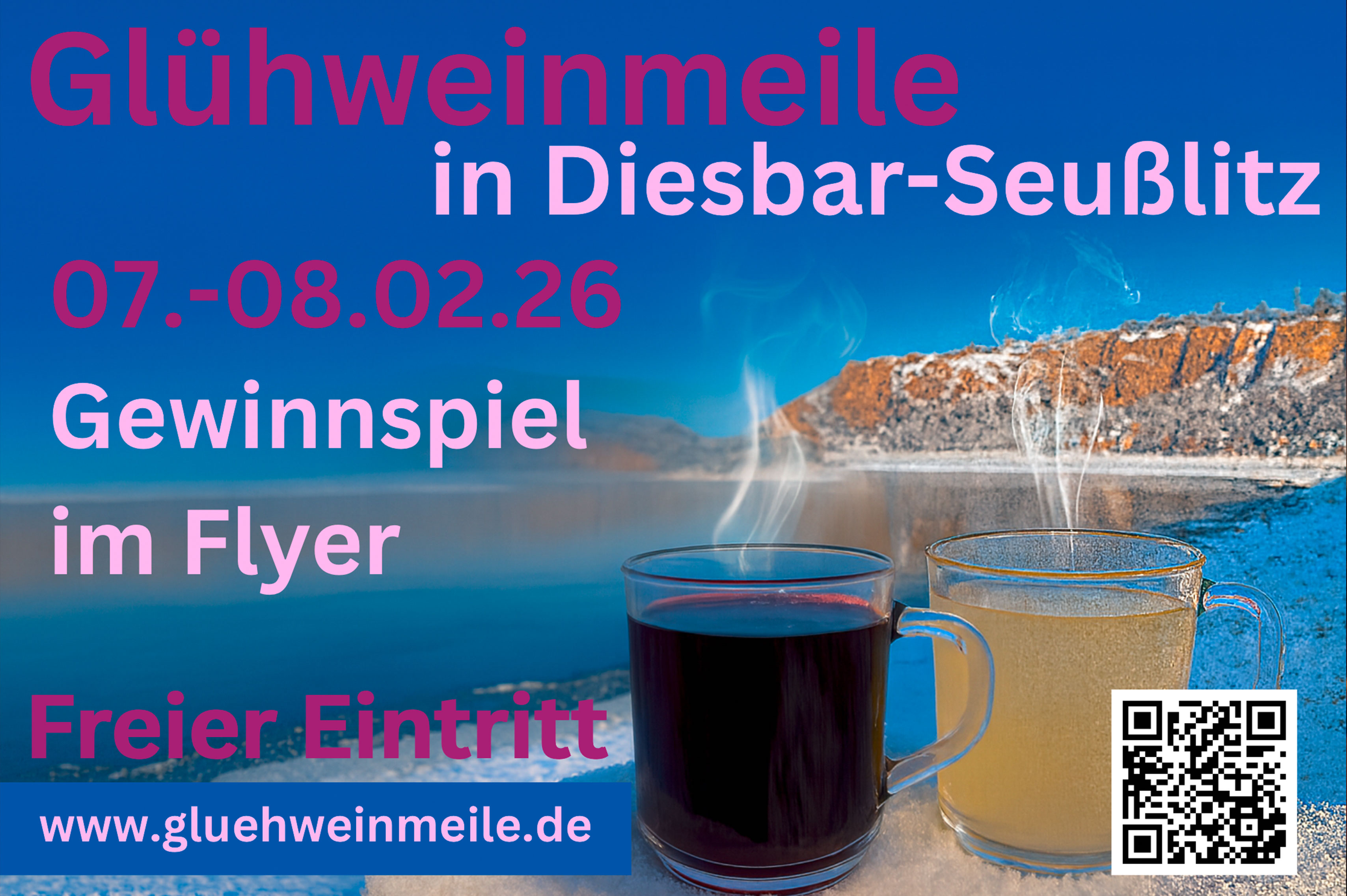 Am 06. bis 08. Februar 2026 findet in Diesbar-Seußlitz die Glühweinmeile statt und lädt Besucherinnen und Besucher von 12:00 bis 18:00 Uhr zu einem winterlichen Spaziergang durch die Sächsischen Elbweindörfer ein. Der Eintritt ist frei.